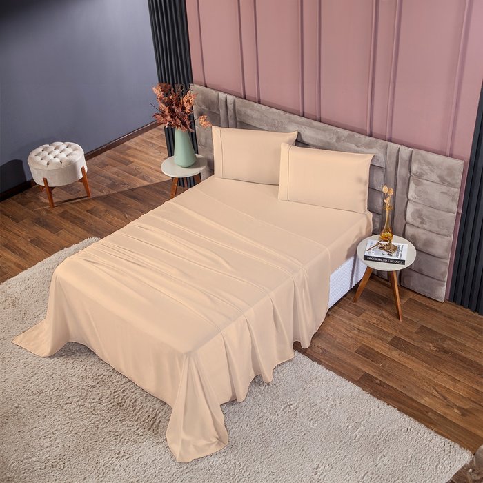 Lençol de Queen 400 Fios 4 Peças Percal em Ponto Palito Cor:bege bege