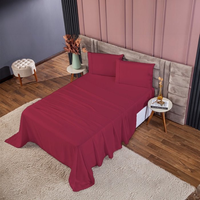 Lençol de Queen 400 Fios 4 Peças Percal em Ponto Palito Cor:vermelho vermelho