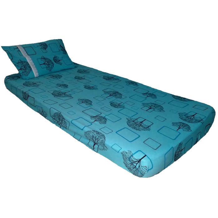 Lençol Elástico Solteiro Malha 100% Algodão + Fronha C/Zíper:Azul Estampado Azul estampado