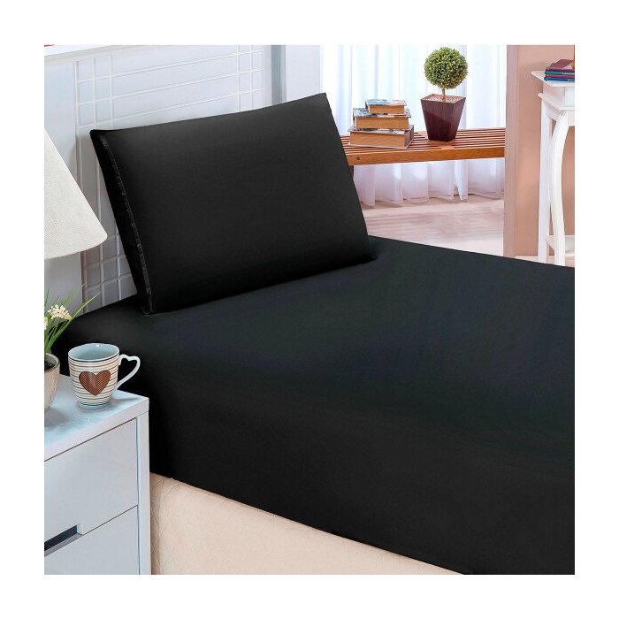 Lençol Preto para Cama Solteiro Liso 2 Peças Lençol de Baixo com Elástico e Fronha