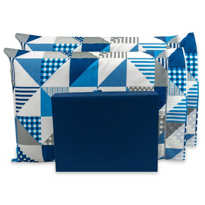 Lençol Queen 180 Fios 3 Peças Estampado - Geométrico Azul Marinho