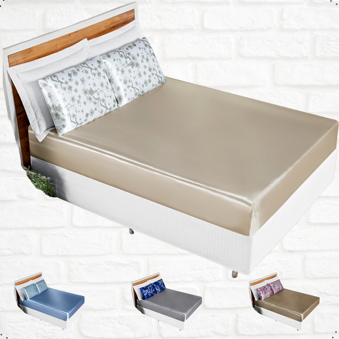 Lencol Queen em Seda Acetinado 3 Peças Toque Suave Cetim Sofisticação Resistente