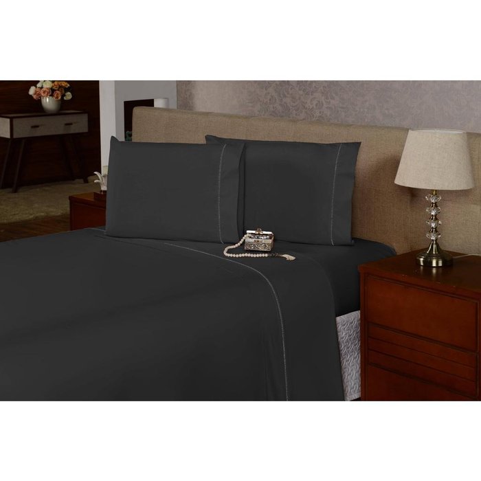 Lençol Solteirão/viúvo Cima Vira e Ponto Palito Percal Flex Preto