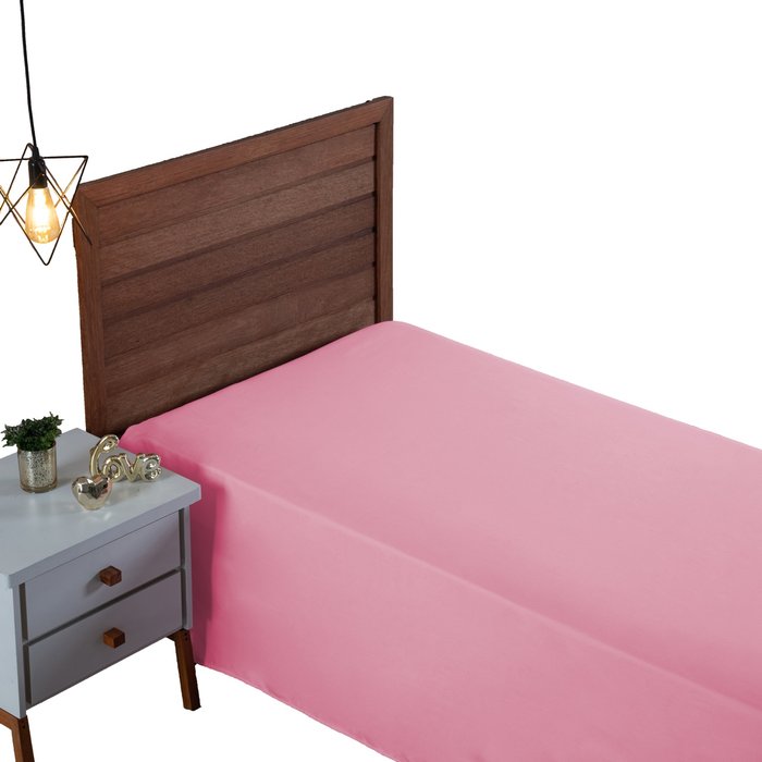 Lençol Solteiro 300 Fios Virol de Algodão Infantil sem Elástico Beliche:rose