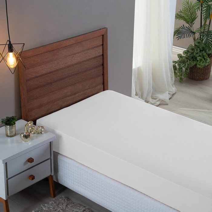 Lençol Solteiro com Elástico Algodão 300 Fios Cama Box Infantil:branco