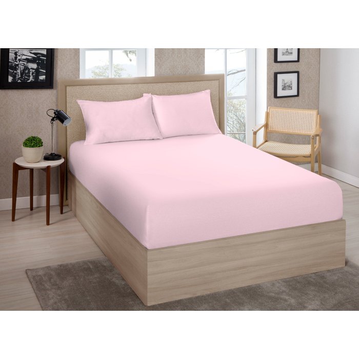 Lençol Solteiro com Elástico Percal 180 Fios 100% Algodão Rosa Claro