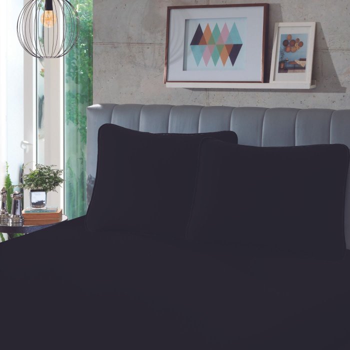 Lençol Solteiro em Malha Com Elástico 100% Algodão 1 Peça:Preto Preto
