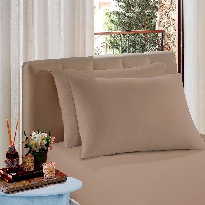 Lençol Solteiro King Liso Com Elástico 100% Algodão Creme de Avelã Vivaldi Sul Brasil