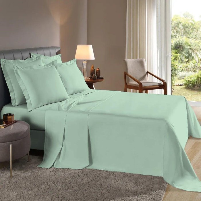 | Modelo | Lençol super king percal 200 fios 100% algodão - verde claro |