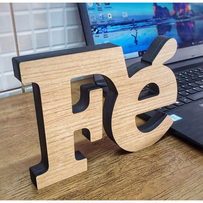 Letreiro 3D "FÉ" - produzido em tripla camada de mdf Texturizado madeira Carvalho