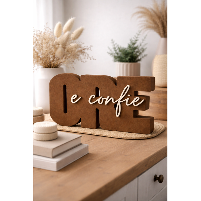 Letreiro 3d Ore e Confie Miira Studio Fé Moderna Marrom