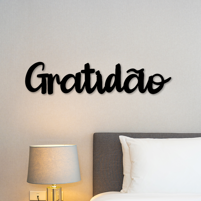 Letreiro de Parede Gratidão em MDF Preto e Branco Silk