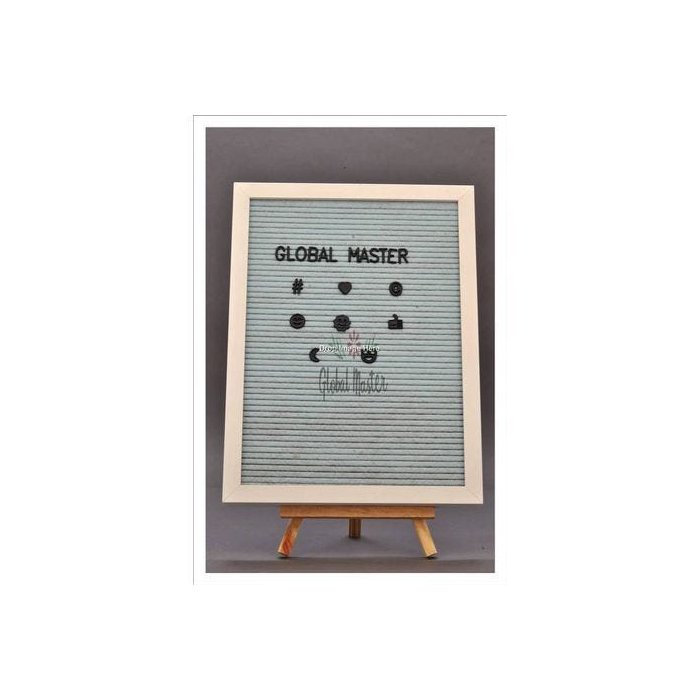 LETTERBOARD - Quadro de mensagens com moldura branca com letras removíveis na cor preta, retangular Os Quadros Decorativos com moldura em Madeira com Letras e Números, é a peça perfeita para decorar e alegrar sua casa, escritório, consultório, restaurante, espaço gourmet. Perfeito para deixar recados em todas as situações, sejam para amigos, filhos, namorados, ou mesmo recadinhos carinhosos e românticos. As peças possuem suporte atras, permitindo que sejam colocadas encima de Mesas, Estantes, Bancadas e Comodas. Especificações : Dimensões: 30 x 40 cm 212 letras 42 números 66 caracteres especiais