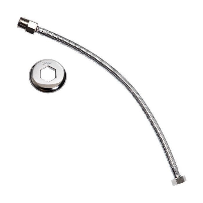 Ligação Flexível de 1/2" x 40cm Aço Trançado inox Ligação flexível com rosca DN15 (1/2") macho/fêmea, com comprimento de 40cm, malha trançada de aço inoxidável e tubo interno de borracha EPDM não tóxica.