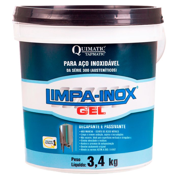 LIMPA-INOX GEL é uma composição de substâncias desoxidantes, recomendado para a desoxidação e limpeza de superfícies de aço inoxidável, principalmente da série 300.