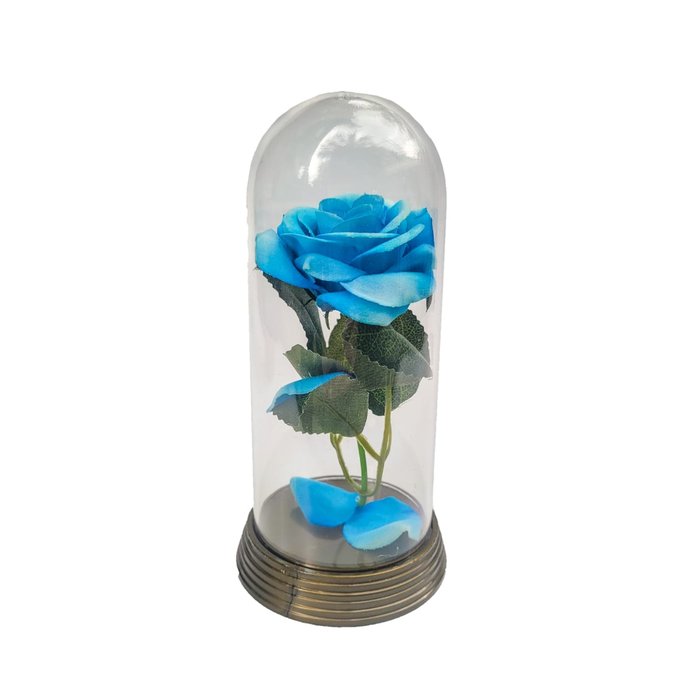 - Flor Artificial toque de seda ou aveludada de Plástico (idêntico ao natural e dura mais de 100 anos dentro da cúpula, é "eterna");