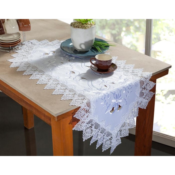 Linha Floral Caminho Mesa Rendado Buenos Aires 40x220cm Bco