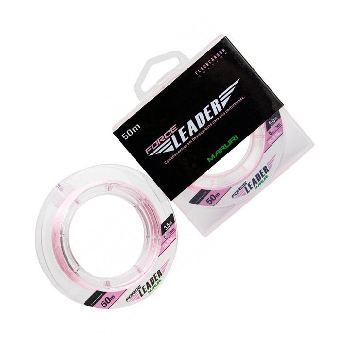 Linha Maruri Force Leader 50m 0,37mm - Pink CristalMonofilamento especial com camadas de fluorocarbono, projetada para pesca em áreas com obstáculos que normalmente rompem as linhas. Resistente a abrasão, a cor pink cristal tende a ficar invisível em uma certa profundidade.Afunda mais rápido, é 30% mais resistente no nó.Ideal para confecção de leader, garante máxima performance na pescaria com iscas artificiais.
