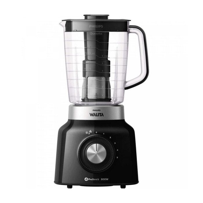 Liquidificador Problend 6 lâminas Duravita oferece o trio perfeito para seu dia a dia com a incrível e exclusiva tecnologia Problend 6 Lâminas: ele corta mais, cabe mais e dura mais! O resultado: tritura até 35 vezes mais fino. Com potência de 800W, 6 lâminas, jarra Duravita tamanho família (20x mais resistente com capacidade de 2,4L) e 2 anos de garantia, ele é tudo o que você precisa na sua cozinha.