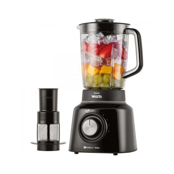 O Liquidificador Viva Collection conta com motor de 700W, jarra de 2 litros e a tecnologia ProBlend de 6 lâminas, combinados para criar o resultados perfeitos no preparo de vitaminas e outros receitas. Bata aTé os ingredientes mais duros com incrível facilidade! - Tecnologia ProBlend 6 Para Mistura Mais Fina - Função Pulsar Para Misturar: Você pode usar o modo "Pulse" para controlar com praticidade o nível e o tempo de processamento. - Botão Moldado Fácil de Usar: Botão moldado fácil de usar e com melhor controle de velocidade. - Indicador de Medida e Cabo Fáceis de Usar. - Seguro Para Lava-Louças, Exceto a Base Principal e o Conjunto de Lâminas: Todas as peças são próprias para lava-louças, exceto a unidade principal e o conjunto de lâminas. - Copo de 2,4L Para Ingestão Diária de Nutrientes. - 5 Velocidades Para Ingredientes Duros ou Delicados. Cód.Fabricante:64756137759 Potência: 700W Voltagem: 127V Velocidade: 5 Velocidades + Pulsar Filtro para frutas: Sim