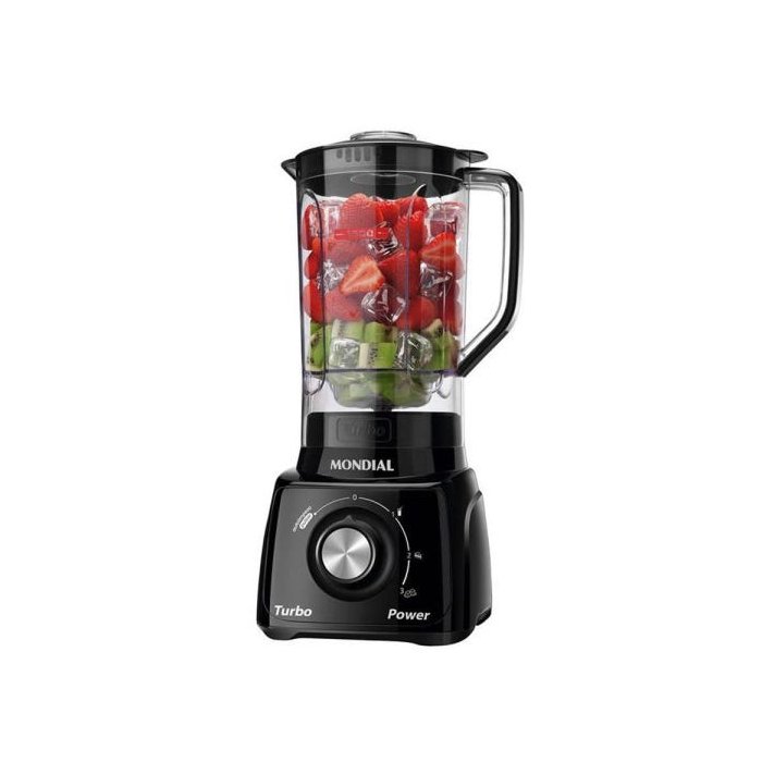 DescriçãoLiquidificador Mondial L99FB Turbo Filtro 3v 1,6 Litros 500W - Preto - 110VBonito e moderno, fácil de usar e potente, tudo o que você procura em um liquidificador você encontra no Liquidificador Mondial L99-WG Turbo Power. São 3 velocidades, Função Pulsar/Gelo, ou seja, capaz de triturar gelo com facilidade e até 500W de potência para misturas mais homogêneas.Bolos, vitaminas, smoothies, cremes, sopas e muito mais, com alta capacidade para fazer receitas de todos os tamanhos, o copo tem capacidade total para até 2,2L. Resistente e graduado, possui design moderno com fácil encaixe na base.Acompanha filtro, ideal para fazer deliciosos sucos e sopas, pois separa as sementes do líquido, assim, aproveita todos os nutrientes dos ingredientes sem desperdício. O Liquidificador Mondial L99-WG com 3 Velocidades Turbo Power 500W combina com você, sua cozinha e seu dia a dia.???????Características:- Nº de velocidades: 3- Função pulsar: Sim- Função autolimpeza: Sim- Copo: Polipropileno- Filtro: Sim- Lâminas: Integradas ao copo- Lâminas em aço inox: Sim- Porta-fio: Sim- Triturador de gelo: Sim- Design moderno com novo sistema de encaixe: prático de montar- Função pulsar/gelo: atinge potência máxima para triturar gelo- Filtro: indicado para fazer sucos e molho com separação de sementes- Lâmina em aço inox: resistente e durável- Função autolimpeza- Guarda-fio com encaixe para o plugue- Copo com 2,2 L de capacidade total: resistente a quedas e riscos- 3 velocidades + Pulsar: escolha a velocidade ideal de acordo com o ingrediente Especificações:- Consumo de energia (kW/h): 0,5Kw/h- Potência (W): 500W- Tensão/Voltagem: 110V- Capacidade total do copo (litros): 2,2L- Capacidade útil do copo (litros): 1,6L Conteúdo da Embalagem:- 01 Liquidificador Mondial L99-WG com 3 Velocidades Turbo Power 500W - Branco- 01 Filtro- Manual de instruções Dimensões:- Altura: 19 cm- Largura: 27 cm- Profundidade: 37 cm- Peso: 2,00 Kg Cor: Preto - Voltagem: 110 VOLTSGarantia: 12 meses contra defeitos de fabrica