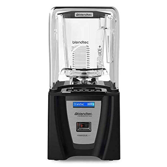 Liquidificador Blendtec Connoisseur 825 com Enclosure de Som e 2 Jarras WildSide+ de 2,75 Litros (Preto) Material: Plástico Tritan | Cor: Preto | Potência: 1800 Watts O Blendtec Connoisseur 825 é a escolha ideal para estabelecimentos comerciais que precisam de um liquidificador potente, silencioso e eficiente. Equipado com um motor de 3,8 HP de pico, ele é capaz de lidar com mais de 150 misturas diárias, mantendo a consistência e a qualidade em cada preparação. Desempenho Silencioso: O Connoisseur 825 inclui um enclosure de som que reduz significativamente o ruído do liquidificador, proporcionando um ambiente mais agradável para clientes e funcionários. Ciclos Preprogramados: Com 42 ciclos preprogramados e uma função de pulso, ele garante receitas perfeitas e consistentes a cada vez, facilitando o preparo de smoothies, bebidas congeladas e molhos gourmet. Jarras WildSide+ Incluídas: O pacote inclui 2 jarras WildSide+ de 2,75 litros, feitas de copoliéster Tritan durável e livre de BPA. O design patenteado de cinco lados e a lâmina de quase 10 cm de comprimento permitem misturas mais rápidas e espessas, otimizando o tempo de preparo. Versatilidade e Durabilidade: Este liquidificador é ideal para uso em balcão ou embutido, oferecendo flexibilidade e confiabilidade. Com um display LCD de fácil leitura e controles por botão, a operação é simples e intuitiva. O que você recebe: 1 x Base do Liquidificador Blendtec Connoisseur 825, 2 x Jarras WildSide+ de 2,75L com tampa. Nota: A jarra possui marcações em onças e mililitros para facilitar a medição dos ingredientes durante o preparo das receitas.