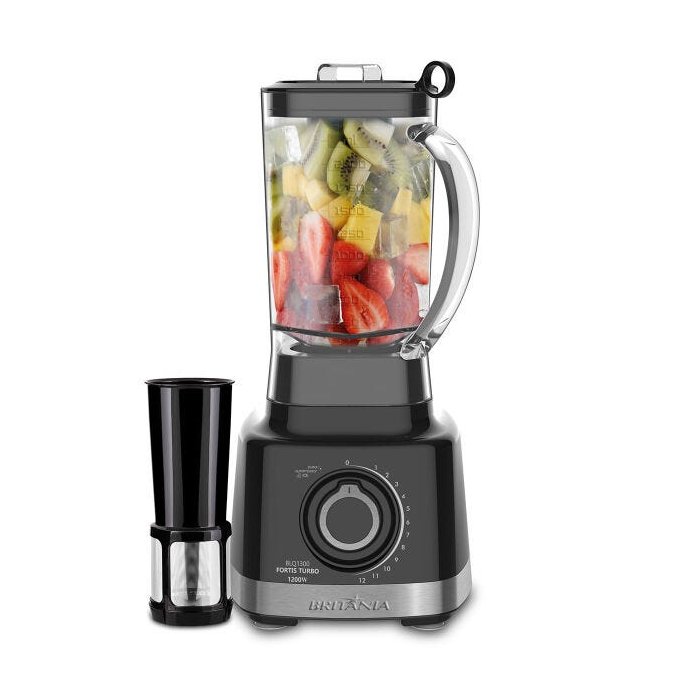 O Liquidificador Britânia BLQ1300P além de lindo tem tecnologia Pro Maxx 6, com 6 lâminas de altíssimo poder de trituração para texturas mais homogêneas. Além de Turbo, mais força em seu funcionamento aliado às12 velocidades e 1200W de potência, não deixa pedaços para trás. Jarra transparente com capacidade de até 3 litros e filtro que separa semente e bagaço e sobre tampa dosadora com graduação, para não esquecer nenhum ingrediente na medida certa da receita. Prepare vitaminas, sucos, molhos, sopas e tudo mais que sua imaginação permitir. Liquidificador Britânia é sinônimo de praticidade e qualidade!