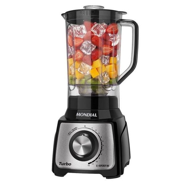 Já imaginou o quão bom seria poder triturar qualquer alimento em seu liquidificador? Agora com o Liquidificador Turbo Inox L-1200 BI da Mondial isso se tornará realidade. Possui um motor super potente com 1200W de potência que prepara diversos alimentos, faca com 6 lâminas em aço inox que tritura os alimentos com praticidade e eficiência proporcionando a mistura perfeita, copo com capacidade total de 3L e capacidade útil de 2,1L ideal para receitas grandes, 12 velocidades que permite a escolha ideal conforme o tipo de ingrediente a ser preparado, um sistema de encaixe inovador que facilita na hora da montagem, tampa com copo dosador que possibilita o acréscimo de outros ingredientes durante o preparo, guarda-fio, função autolimpeza, função pulsar/gelo e além de tudo isso ele tem um design super moderno na cor preta com painel de inox perfeito para sua cozinha. Mondial sua melhor escolha!