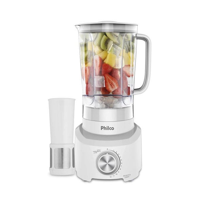 •O Liquidificador Philco PLQ12 Branco possui 1200W, potência que te leva muito além na hora de cozinhar!