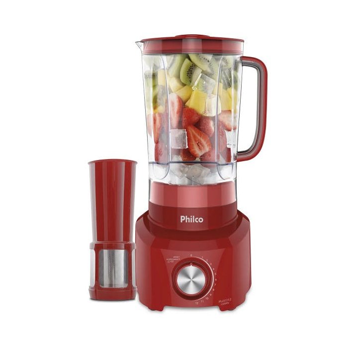 •O Liquidificador Philco PLQ12 Vermelho possui 1200W, potência que te leva muito além na hora de cozinhar!