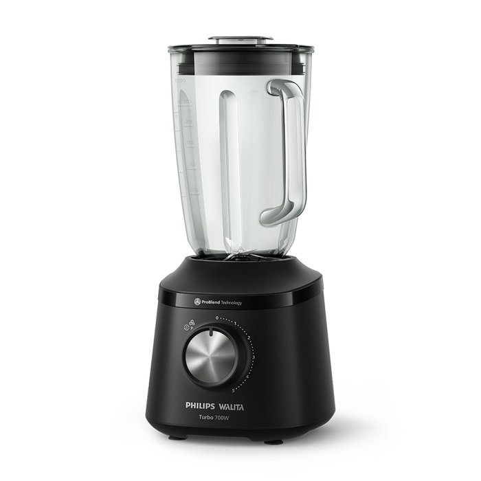 Com um motor robusto de 700W de potência e a exclusiva função turbo, o Liquidificador Philips Walita Série 3000 proporciona máxima eficiência no preparo de sucos, vitaminas, sopas, molhos e até mesmo massas. Sua exclusiva tecnologia ProBlend4 com 4 lâminas em aço inoxidável foi projetada para triturar até os ingredientes mais firmes com facilidade, garantindo uma mistura homogênea e rápida.