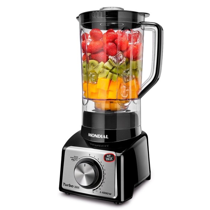 | Informações Complementares (Novo) | Com 1.000W de potência e capacidade total de 3 litros, o liquidificador Mondial Turbo L-1000 é perfeito para a sua família! Ele oferece vantagens na preparação de grandes porções: são 12 velocidades, faca serrilhada com 6 lâminas em Inox e função Autolimp |