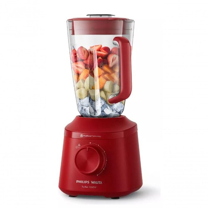 Imagine preparar suas receitas favoritas com um liquidificador que oferece potência e praticidade. Para receitas saborosas e práticas, conheça o Liquidificador Philips Walita. Com Tecnologia ProBlend 4, suas 4 lâminas removíveis de aço inox mais resistentes , batem frutas, gelo e receitas com muita facilidade. Jarra em Acrilico com 3L de capacidade para preparar receitas para toda a família. Conta com 5 velocidades mais função pulsar e motor turbo de 1000W para um desempenho excelente e sem esforço no preparo de suas receitas favoritas, tritura qualquer alimento sem deixar pedaços! Disponivel em modelos de 1000 e 1200W.Especificações:Material do Copo: Plastico/AcrilicoFunções: Liquidificar, TriturarVelocidades: 5 + PulsarCapacidade do Copo: 2 LitrosFunção PulsarLâminas Removíveis Porta-fioBase AntiderrapantePotência: 1000WConsumo de Energia: 0,7 kw/hVoltagem: 110V / 220V (não é bivolt)Produto possui certificação de compulsória, certificado pela UL-BR , organismo acreditado pela CGCRE do ões e PesoDimensões do produto sem embalagem (AxLxP): 400x195x200 mmDimensões do produto com embalagem (AxLxP): 390x290x220 mmPeso do produto sem embalagem: 3,1 KgPeso do produto com embalagem: 3,7 KgItens Inclusos01 Jarra01 Manual01 Certificado de Garantia