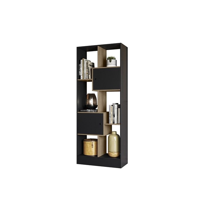 Livreiro Multiuso Com 6 Nichos Organizador 2 Portas Estante Carvalho Preto - Qmovi Carvalho/Preto