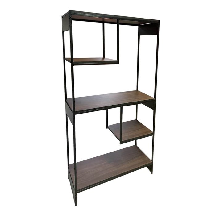 Livreiro Multiuso Estante com Nicho Estilo Industrial Metal cor Marrom e Preto