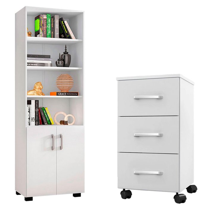 Livreiro Office C/ Gaveteiro Pietra Branco
