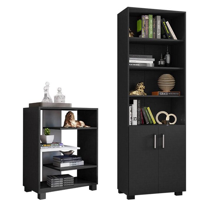 Livreiro Office com Portas Pequenas e Livreiro Pequeno Luna Preto Trama – Móveis Leão Preto Trama
