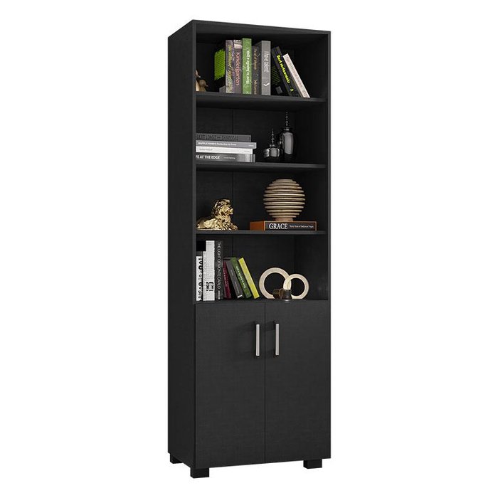 Livreiro Office com Portas Pequenas Preto Trama - Móveis Leão