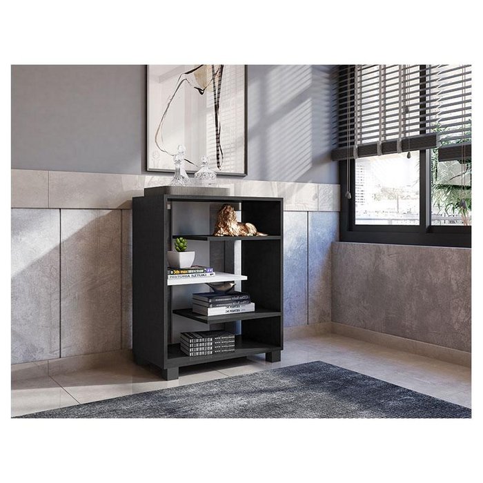 Livreiro Pequeno Ambiente Luna Preto Trama Branco - Móveis Leão