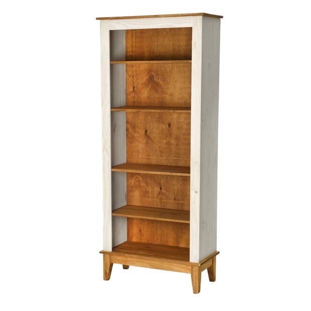 Estante em madeira maciça de reflorestamento de Pinnus Elliotii com pintura em cera a base d’agua, matéria-prima e acabamento que valorizam a beleza natural dos veios da madeira conferindo originalidade e design único a cada peça. Possui 4 prateleiras de 15mm.
