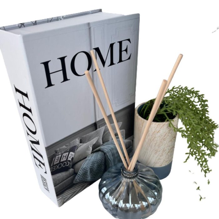 Nada mais encantador, original e inspirador do que utilizar livros na decoração de diversos ambientes, como salas de estar, escritórios, quartos, home office e onde mais sua imaginação permitir. Os livros decorativos são a mais nova tendência na decoração contemporânea e permitem diversas combinações e utilizações, dando um ar de sofisticação em mesas de centro, aparadores, prateleiras, escrivaninhas etc. Esse lindo livro estampa 'Home Design', irá encantar você pela riqueza de detalhes e qualidade no acabamento, junto do difusor de vidro trabalhado e vaso de cerâmica estampa amadeirada que dão um toque todo especial no ambiente.