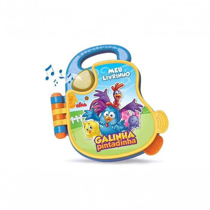 Livro Musical - Meu Livrinho - Galinha Pintadinha - Elka: este Livro com páginas ilustradas com a turma da Galinha Pintadinha possui botão com músicas, além de alça e abas com textura. Indicado para crianças a partir de 9 meses. Modelo adorável para que a criança desenvolva a imaginação e diversos sentidos cognitivos. INFORMAÇÕES:- Produto: Meu Livrinho Galinha Pintadinha Com Som- Fabricante / Fornecedor: Elka- Tipo: Livrinho Musical para bebê- Material / Composição: Plástico atóxico- Conteúdo: 1 Livrinho- Bateria: 3 baterias LR 41- Recomendação: para crianças a partir de 9 meses de idadeBENEFÍCIOS DE BRINCAR: - Exercita o imaginário- Desenvolve a criatividade- Desenvolve audição, visão e tato- Estimula habilidades motoras básicas- Estimula a coordenação motora- Estimula a concentraçãoAVISO:- As imagens são meramente ilustrativas. As cores e estampas dos produtos podem ter variações. As informações são de responsabilidade do fabricante ou fornecedor.ATENÇÃO:- Comprar Livro Musical - Meu Livrinho - Galinha Pintadinha - Elka ficou fácil.Aproveite nossas condições.. Oferta válida por tempo limitado ou enquanto durarem os estoques