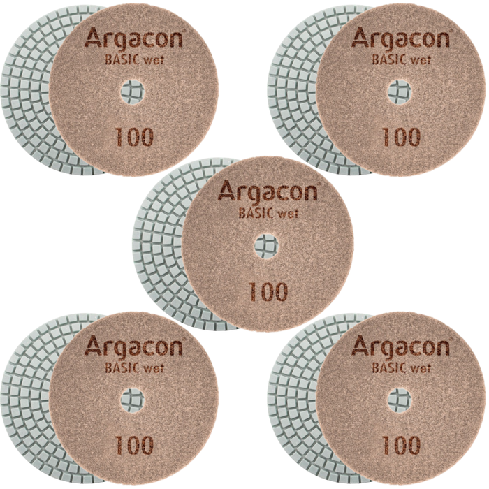 As Lixas Diamantadas Flexíveis da Linha Basic WET da ARGACON foram desenvolvidas com a mais alta tecnologia em nano moléculas. Fabricadas com a fusão de diamantes industriais e resina de alto desempenho. Tem como função fundamental o polimento em porcelanato, mármore e granito obtendo excelente brilho e realce da superfície polida. Proporciona a remoção de riscos conseguindo rapidamente o fechamento de poros dando uma aparência mais lisa e uniforme. Os tamanhos das lixas são de 4 polegadas (100 mm) de diâmetro.