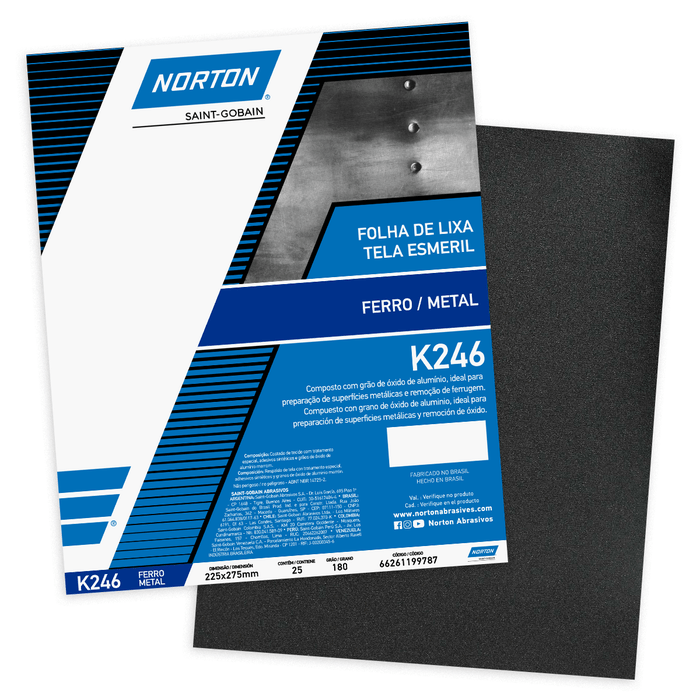 Lixa para Ferro e Metal K246 Grão 180 Norton 25 Folhas 66261199787 66261199787