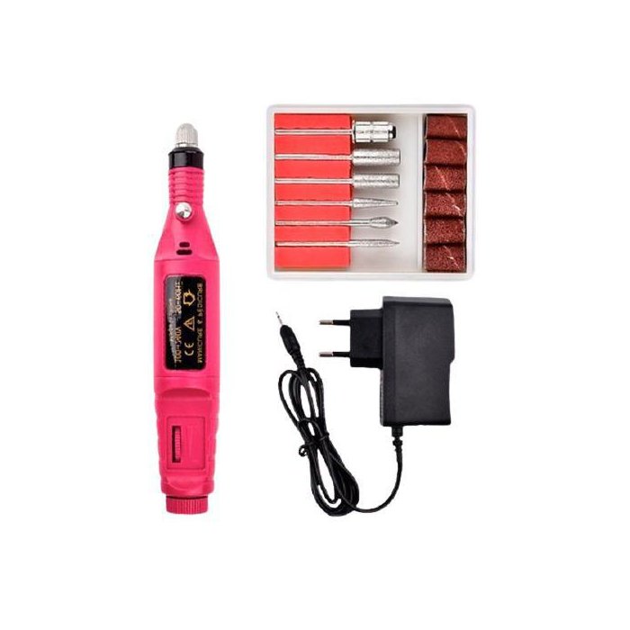 Marca: APROMS - Modelo: Kit Manicure Pedicure Elétrica Profissional - Finalidade: Pode ser usada para unhas naturais bem como unhas artificiais - Brocas: Aço Inoxidável - Tipo: Silencioso - Tensão: Bivolt AC 110 ~ 240v - Velocidade: Ajustável até 20.000 RPM -Adaptador de energia: AC 110 ~ 240v / Saída 9v / 1000mA - Alta qualidade - Fácil de transportar - Peso leve - Operação precisa - Silenciosa e suave - Unhas das mãos e dos pés perfeitas e elegantes.