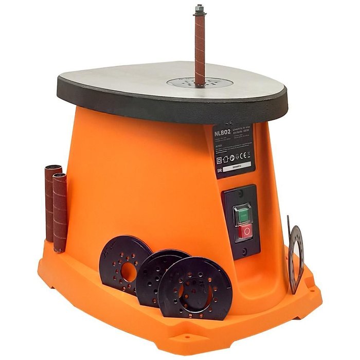Lixadeira oscilante com mesa de ferro fundido é ideal para dar acabamento nos mais diversos tipos de trabalhos feitos em madeira. Velocidade: 2.000 rpm Potência do motor: 450W Oscilações por minuto: 58opm Mesa de trabalho: 300 x 370 mm Curso oscilante: 16mm Acompanha: 6 lixas, de diâmetros: 13, 19, 26, 38, 51, 76 mm 5 eixos de lixamento de borracha: 19, 26, 38, 51, 76 mm 6 mangas de lixar: 13, 19, 26, 38, 51, 76 mm 4 discos do eixo: 16, 23, 45, 70 mm