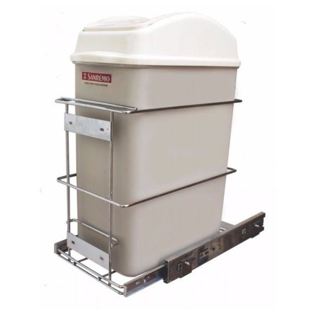 Produto utilizado em armários de cozinha residências ou comercial. Lixeira de embutir com Trilho Telescópico, podendo ser usada juntamente com a abertura da porta ou pode ser instalada na base ou lateral do armário, é um produto de extrema importância para sua casa, para organização e na limpeza do ambiente.