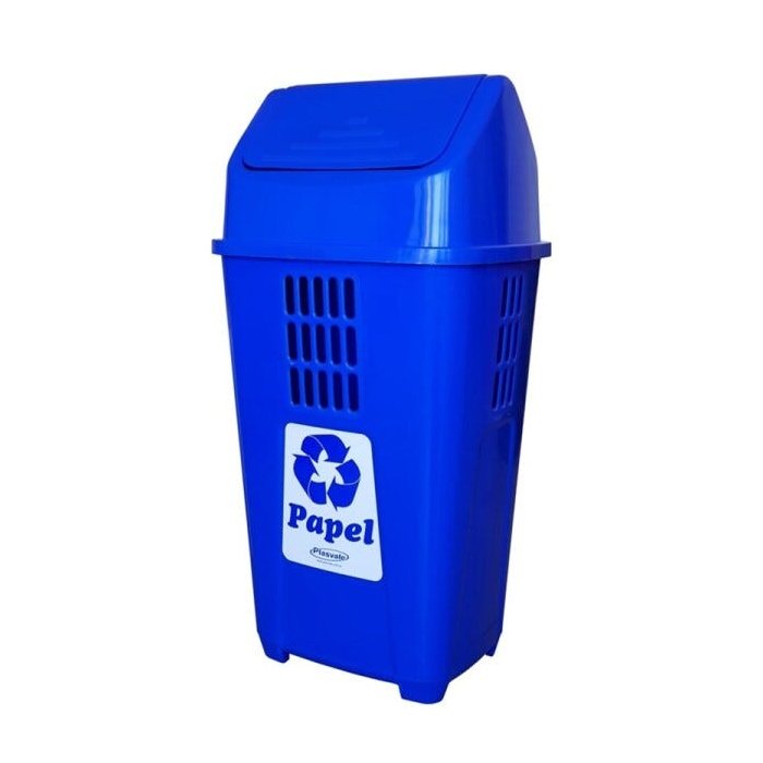 Lixeira 50 litros com tampa coleta seletiva lixo container para empresa apartamento plastico azul