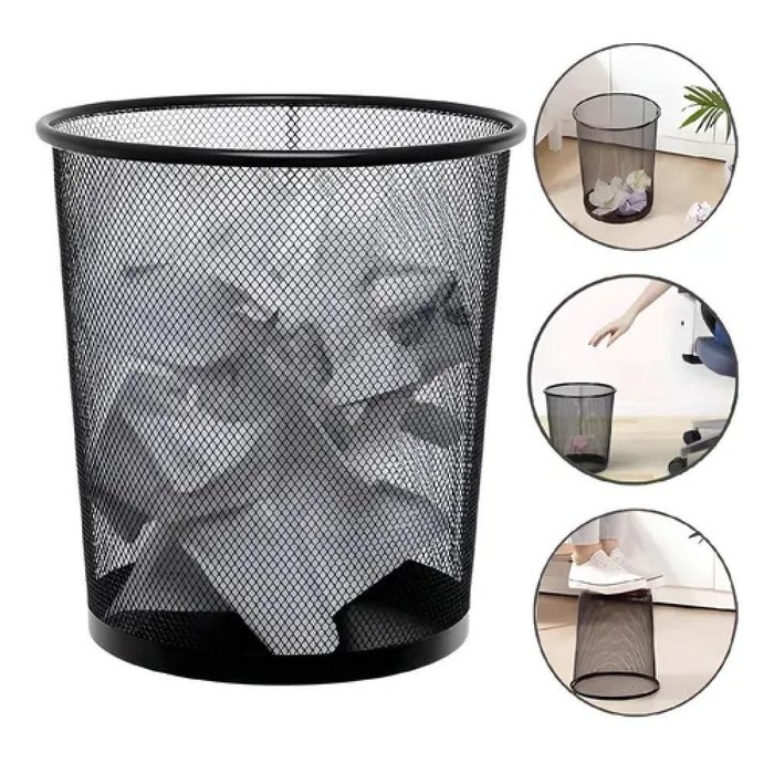 Lixeira de Metal Vazado Redonda – 10 Litros Organize seu espaço com praticidade, estilo e qualidade! A Lixeira de Metal Vazado é perfeita para manter o ambiente limpo e sofisticado, ideal para escritórios, home offices e outros espaços profissionais.Principais Características:- Design Moderno e Elegante: formato redondo vazado que combina com qualquer ambiente- Material Resistente: fabricada em ferro com pintura esmaltada, garantindo durabilidade e qualidade- Leve e Prática: estrutura maleável para facilitar o uso diário- Bordas Arredondadas: totalmente segura e sem rebarbas- Capacidade Ideal: 10 litros, perfeita para lixo seco- Fundo Fechado: impede vazamentos e mantém a limpeza do espaçoDimensões do Produto:- Altura: 27 cm- Diâmetro da base: 18.7 cm- Diâmetro da abertura: 23 cm- Material: Ferro com malha telada e pintura esmaltadaConteúdo da Embalagem:1x Lixeira de Metal Vazado – 10LLeve mais praticidade e sofisticação para seu ambiente com esta lixeira moderna e funcional!