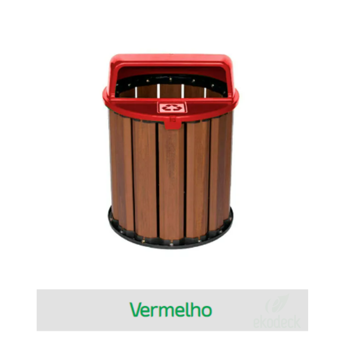 Lixeira Coleta Seletiva 50cm E 65L Madeira Plástica:Vermelho